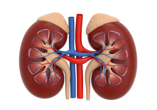 Anatomical Illustration of Human Kidneys with Blood Vessels