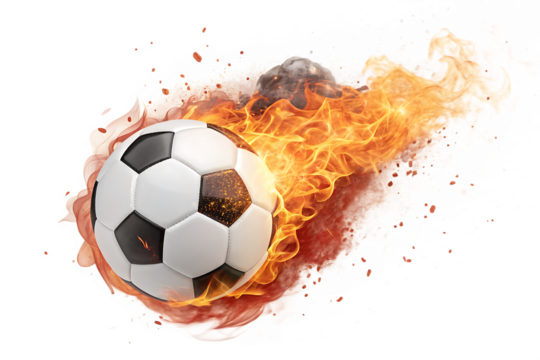 flaming soccer ball sports and recreation isolated on white background PNG, AI GENERATED