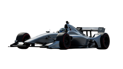 A sleek gray open-wheel race car, embodying high-speed winter sport performance, is isolated in a bright studio cutout.