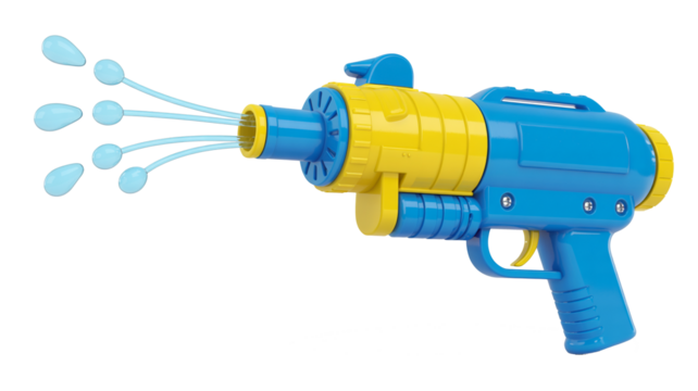 Engaging children's water pistol toy for summer recreation marketing and playful outdoor visuals on transparent background.