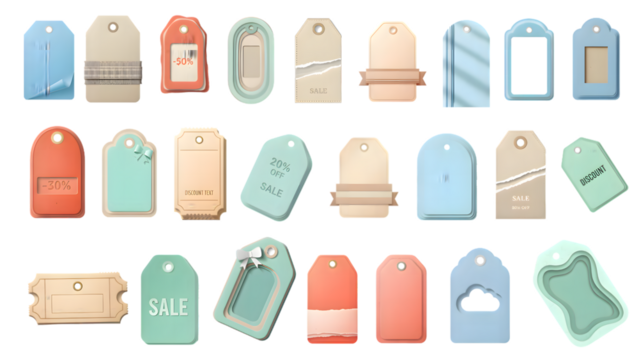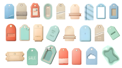 Pastel color paper sheets floating in air. Colorful design for memos, notes, and reminders with a transparent background
