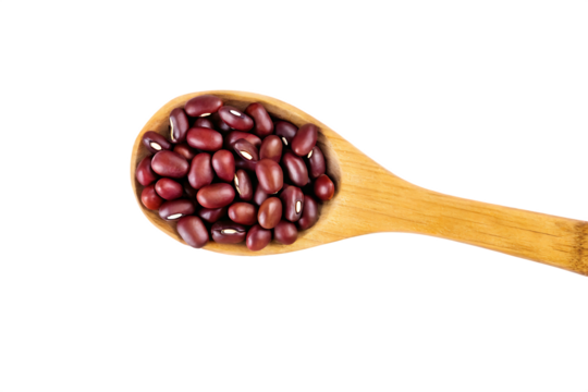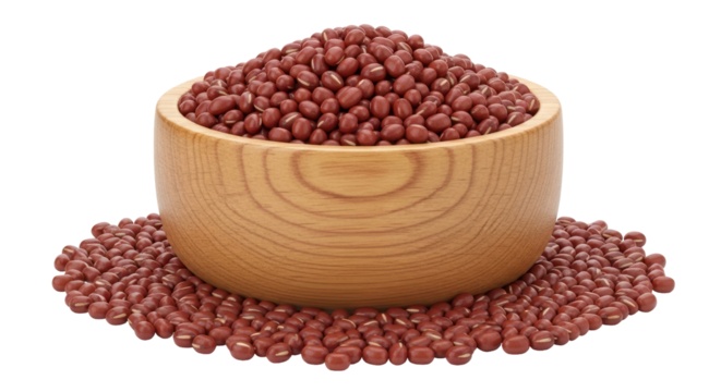 Red beans on wooden bowl isolated on white background. Suitable for marketing or business purposes. PNG file