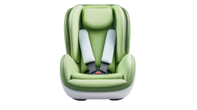 3D rendered green car seat, a concept object for car ride safety for infants and young children