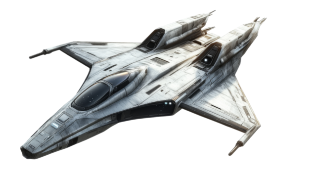 Futuristic fighter jet design digital art transparent background png high-tech environment aerial view concept art