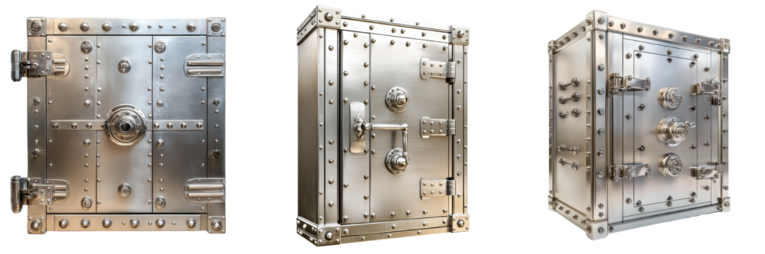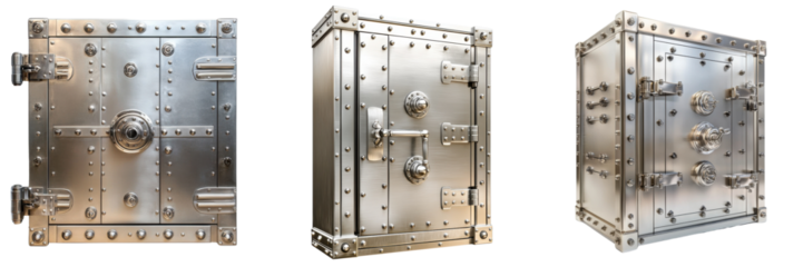 A Set of Advanced Steel Bank Vaults with Maximum Security Isolated on Transparent Background