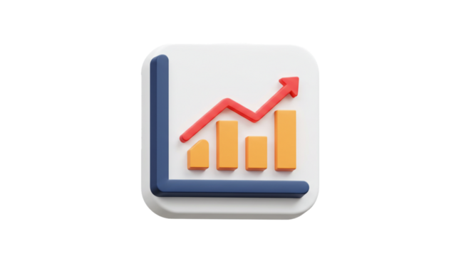 3D blue bar graph shows increasing data, with green upward arrow