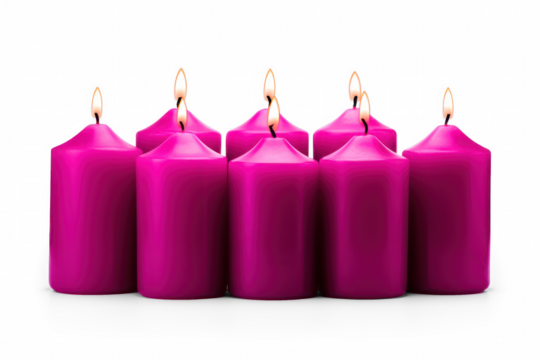 Lit candles with purple, red, and black color, cut out transparent