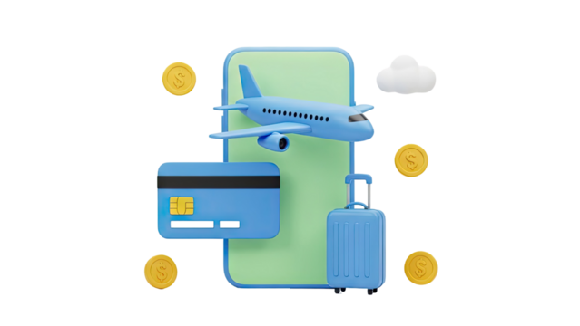 Hand holding phone showing rocket in colorful shapes, AI, PNG
