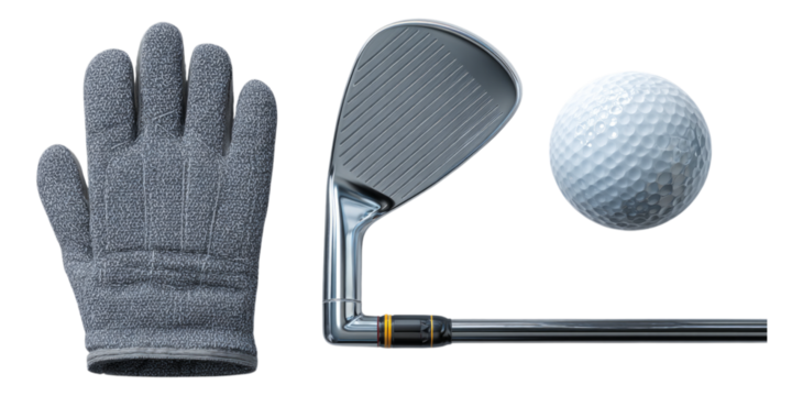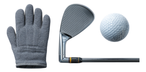 Golf Equipment Set with Club, Ball, and Glove Isolated on Background