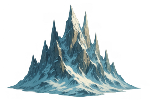Mountain range with snow on the peaks and a blue sky. isolated illustration on transparent background