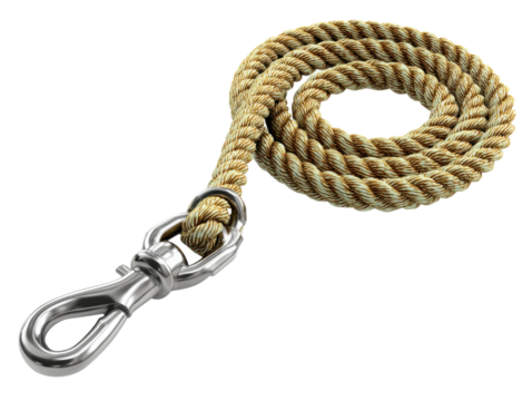 Rope leash for pets outdoor adventure product photography close-up. Isolated on transparent background, png.