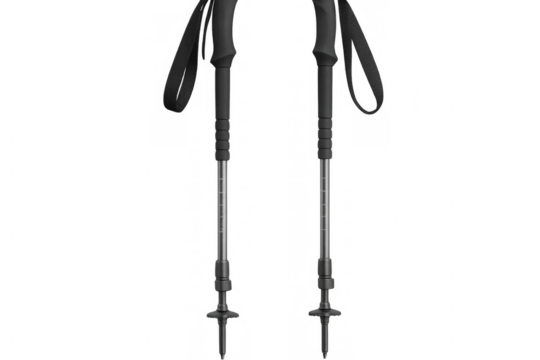 Pair of trekking poles hanging against a transparent background, poised for outdoor adventures and ready for hiking and exploration