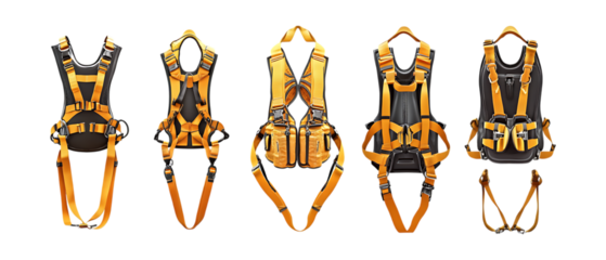 Pack of Climbing Harness Safety Equipment set Against Transparent Background for Adventure Branding, Safety Design, or Outdoor Gear Projects