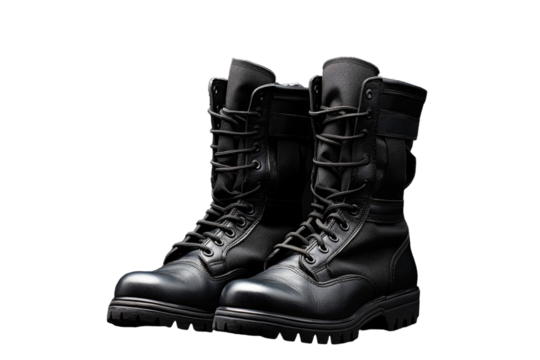 Durable Combat Shoes Designed for Tough Terrain Isolated on Transparent Background