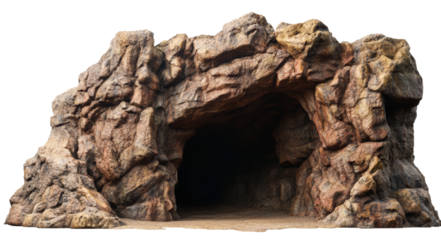 Cave entrance with brown rocks suitable for naturethemed designs, outdoor adventure concepts, geology educational materials, and travel brochures.