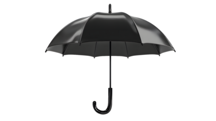 A sleek black umbrella with a glossy finish, symbolizing protection and elegance in adverse weather conditions.