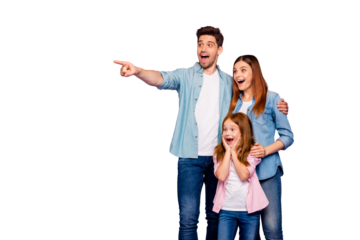 Photo of three family members visiting zoo indicating funny animal wear casual clothes isolated purple background