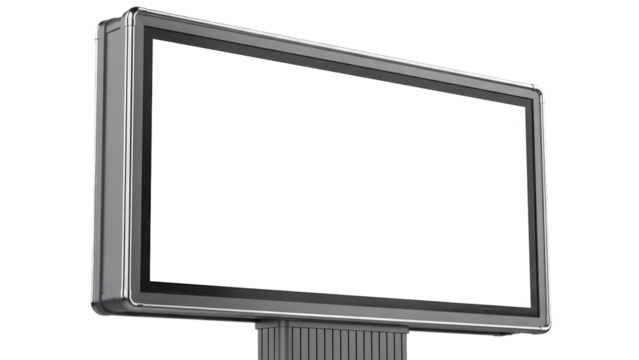 Blank white billboard on tall metal pole, isolated high-resolution PNG cutout with transparent background feel, clean outdoor advertising mockup template with copy space, freestanding signage