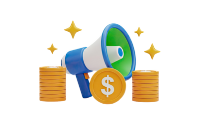 Megaphone 3D graphic illustration for urgent announcement, promotion, alert, and advertising concept isolated PNG with Transparent Background