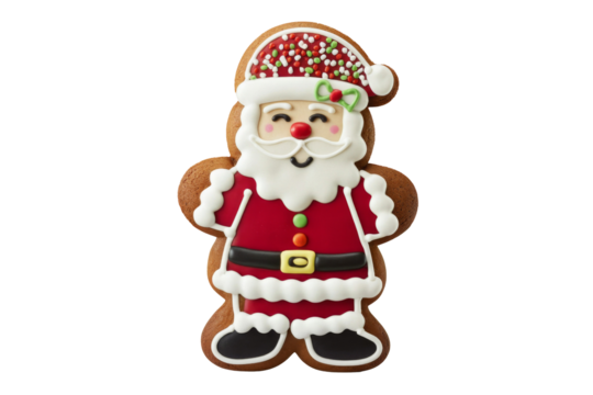 Cookie, gingerbread cookie, in Santa shape on Transparent Background. Ideal for advertising layouts, banners, designs.