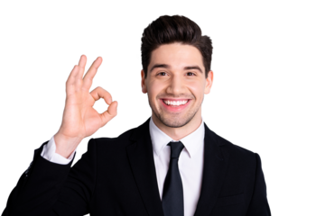 Portrait handsome millennial entrepreneur real estate agent feel rejoice enjoy confident stylish have adverts decide choose recommend feedback dressed modern stylish outfit isolated grey background