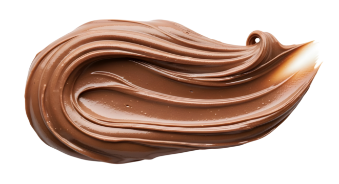 Luxurious swirl of brown melted chocolate spread or hazelnut cream dessert isolated for advertising isolated PNG with Transparent Background