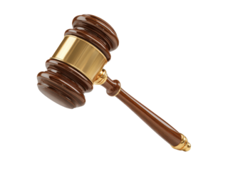 Wooden gavel with golden band brown metal, Isolated, Png Transparent Background