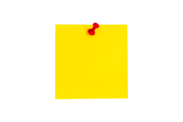Torn note with yellow pushpin on transparent background