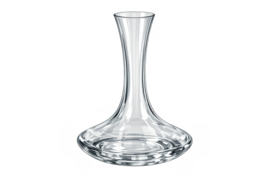 Glass wine decanter or carafe for aerating and serving beverages with transparent background