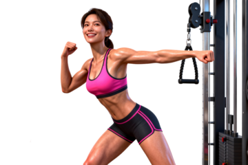 Sporty woman exercising fitness pose on transparent background
