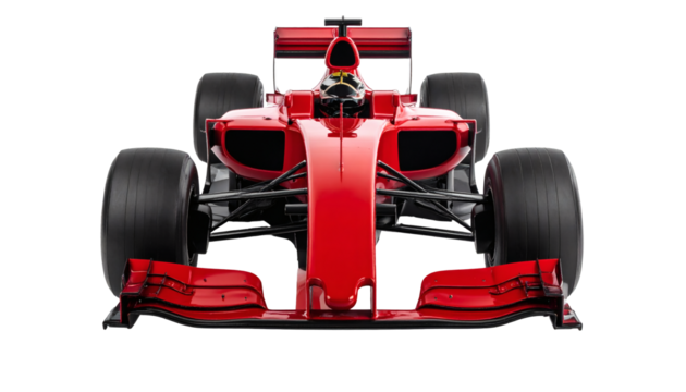Bold red Formula One race car ready for high-speed action on the track with aerodynamic design and powerful engine