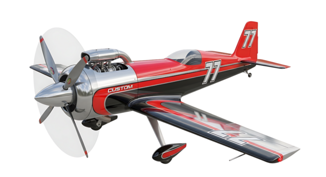 Red and silver racing plane isolated on transparent background