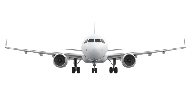 Commercial Airplane Front View Isolated on White Background
