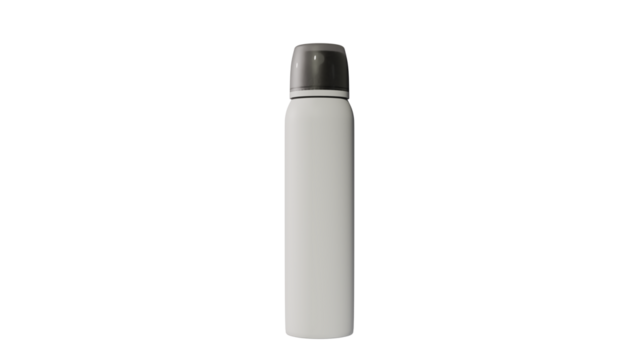 Matte black deodorant spray can standing upright isolated on transparent background PNG