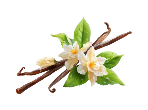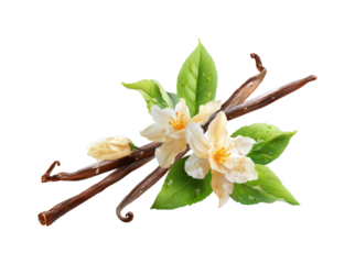 Vanilla flower and pods arrangement natural botanical aesthetic appeal isolated on transparent background, png