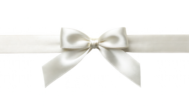 Elegant white satin bow with silver edging, perfect for gift wrapping or decoration