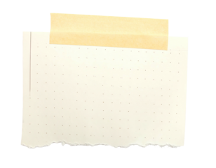 Beige dotted paper, torn at bottom, taped with tan masking tape. Blank space for notes