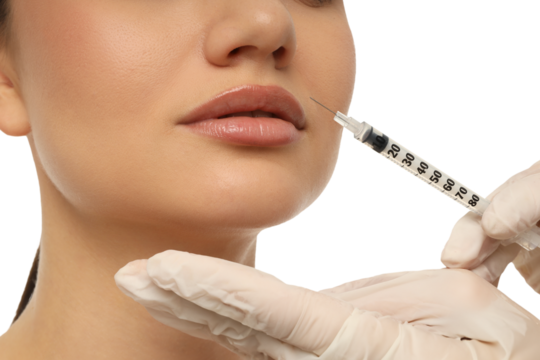 Botox injections for forehead wrinkles treatment woman beauty cosmetic procedure isolated on transparent Background