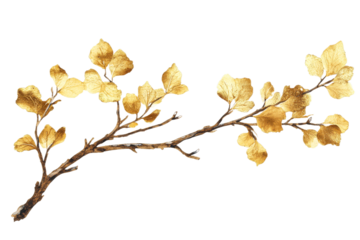 Golden leaf branch with transparent background for decor