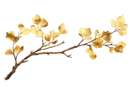Golden branch illustration on transparent background visibly elegant and organic