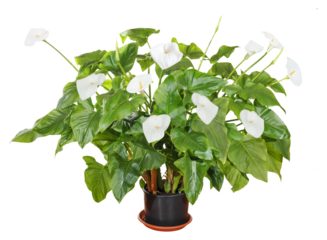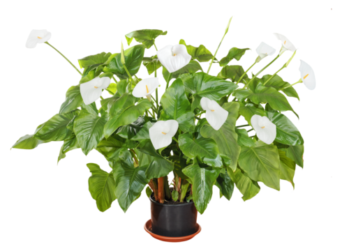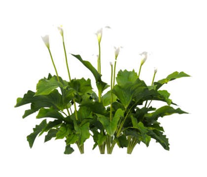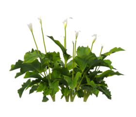 lily Plant isolated on White background. Arum lily plant isolated on White background. Plant leaves isolated. decorative house plants. Zantedeschia aethiopica plant isolated on white background.