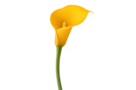 Yellow calla lily flower on transparent background, illustrating elegance, botany, and spring flora