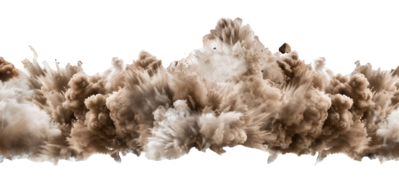 Dust explosion, transparent background, high-speed capture, billowing dust, sharp detail, muted colors, dramatic lighting