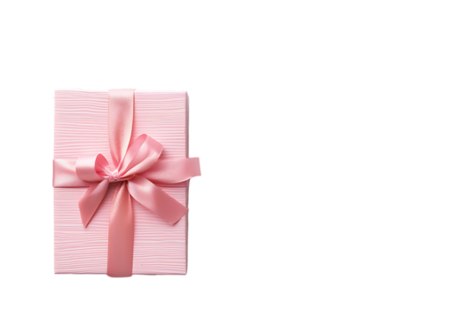 Pink gift box with ribbon on white wooden background. Valentine's Day or Mother day concept.