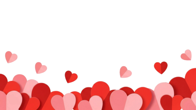 Collection of red hearts in various sizes on a transparent background for love and valentines day concepts