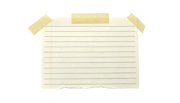 Lined paper affixed to a background with tape, torn edge at the bottom