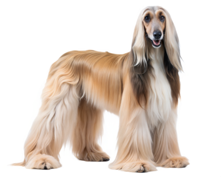Afghan hound dog standing isolated on transparent background