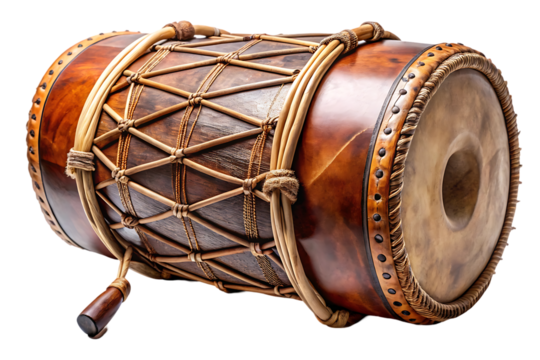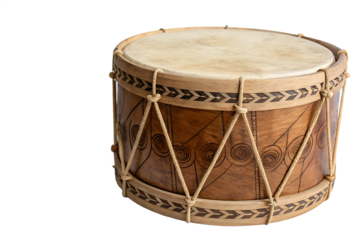 Handcrafted Wooden Drum Music Instrument on Transparent Background