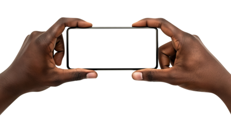 Mobile phone in hands of an African American man, cut out