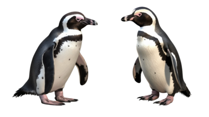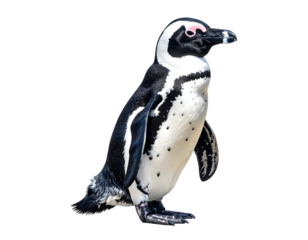 African penguin with distinctive black and white plumage standing upright in classic penguin posture, isolated on a transparent background